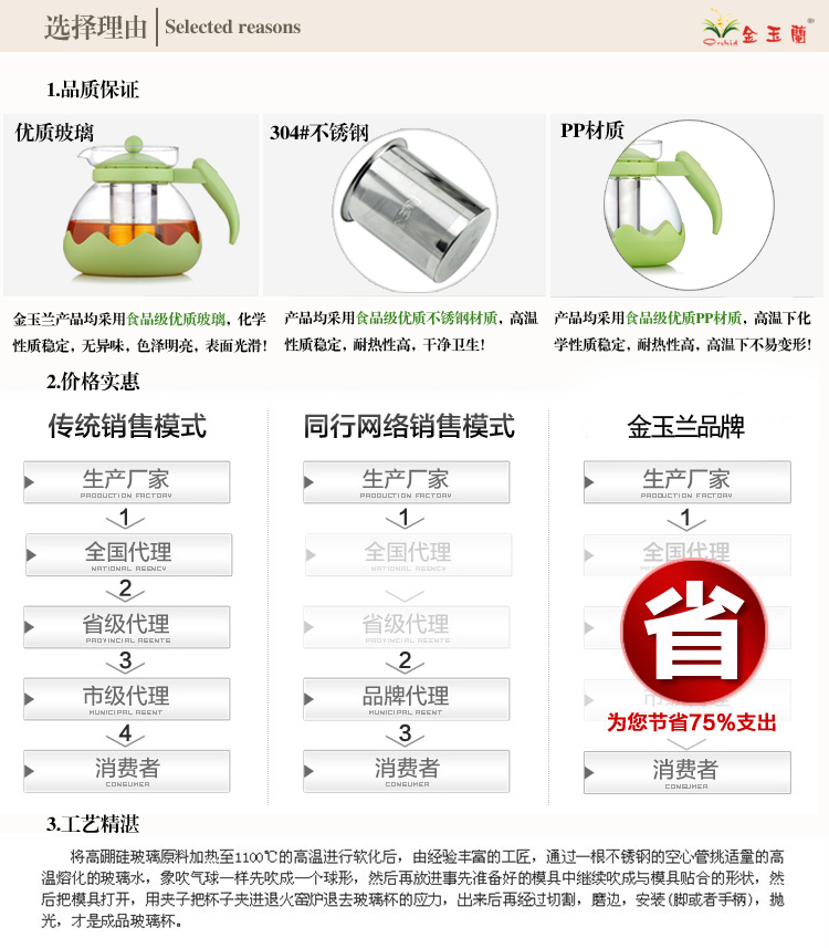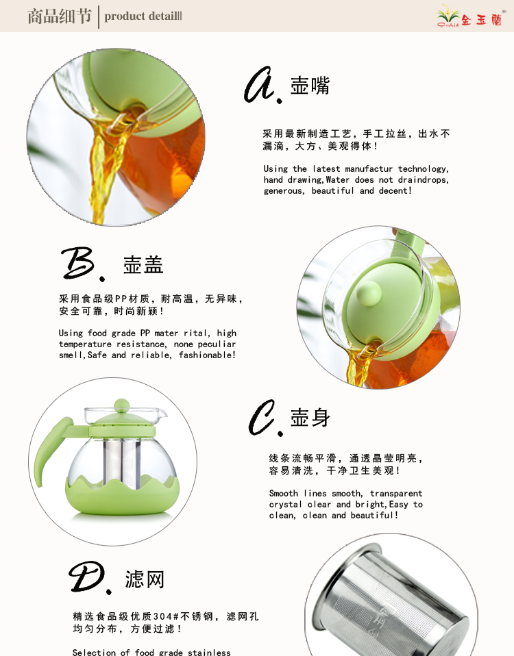 | 【材质】 壶身:耐热玻璃 手柄/盖:食品级PP |