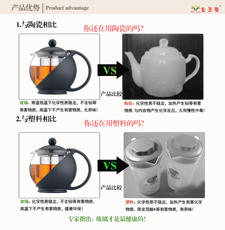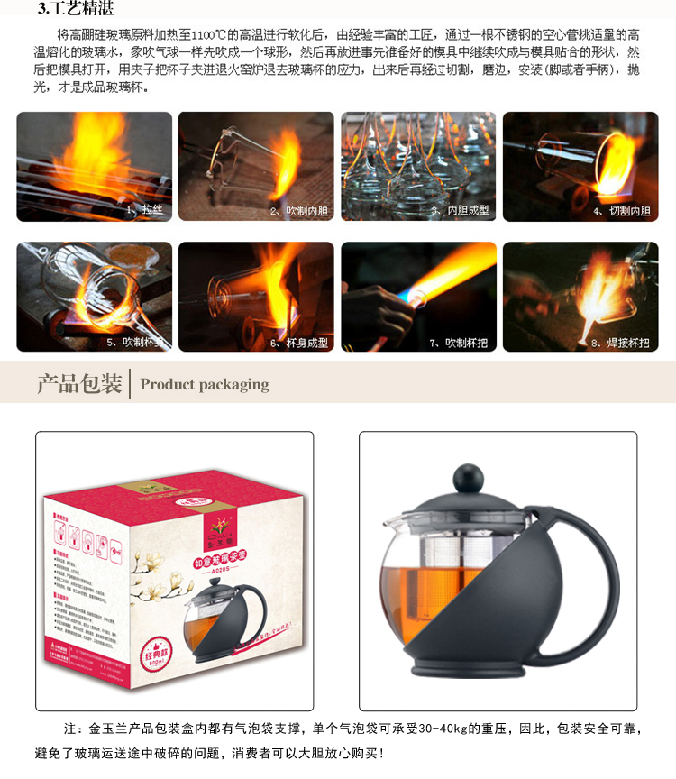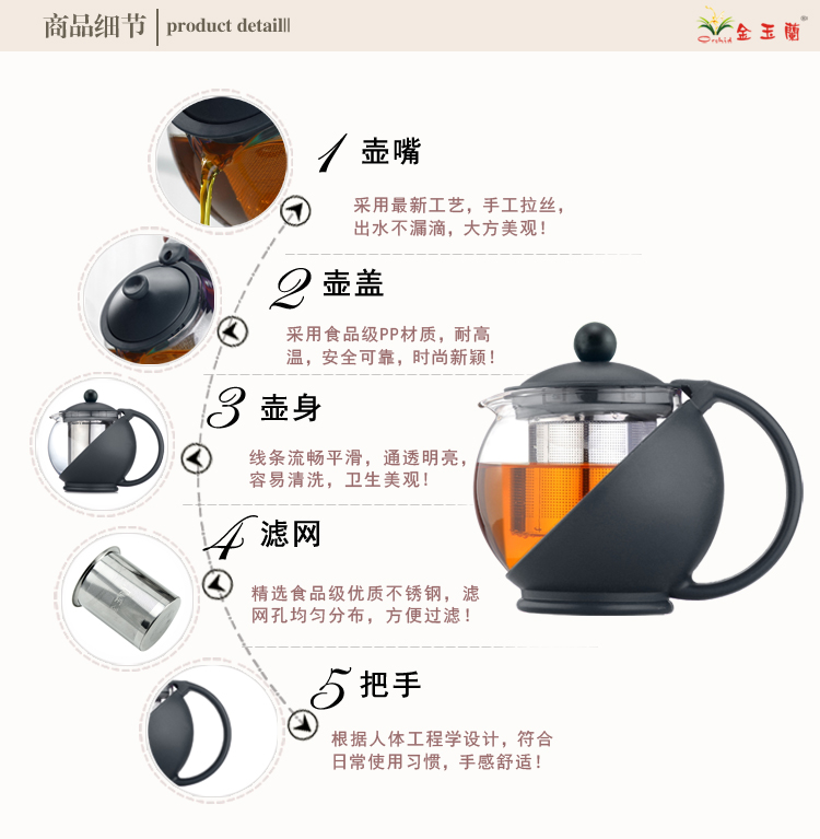 | 【材质】 壶身:耐热玻璃 手柄/盖:食品级PP |