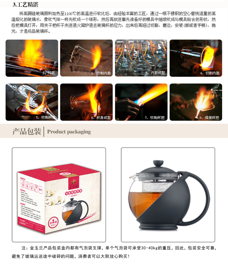 | 【材质】 壶身:耐热玻璃 手柄/盖:食品级PP |