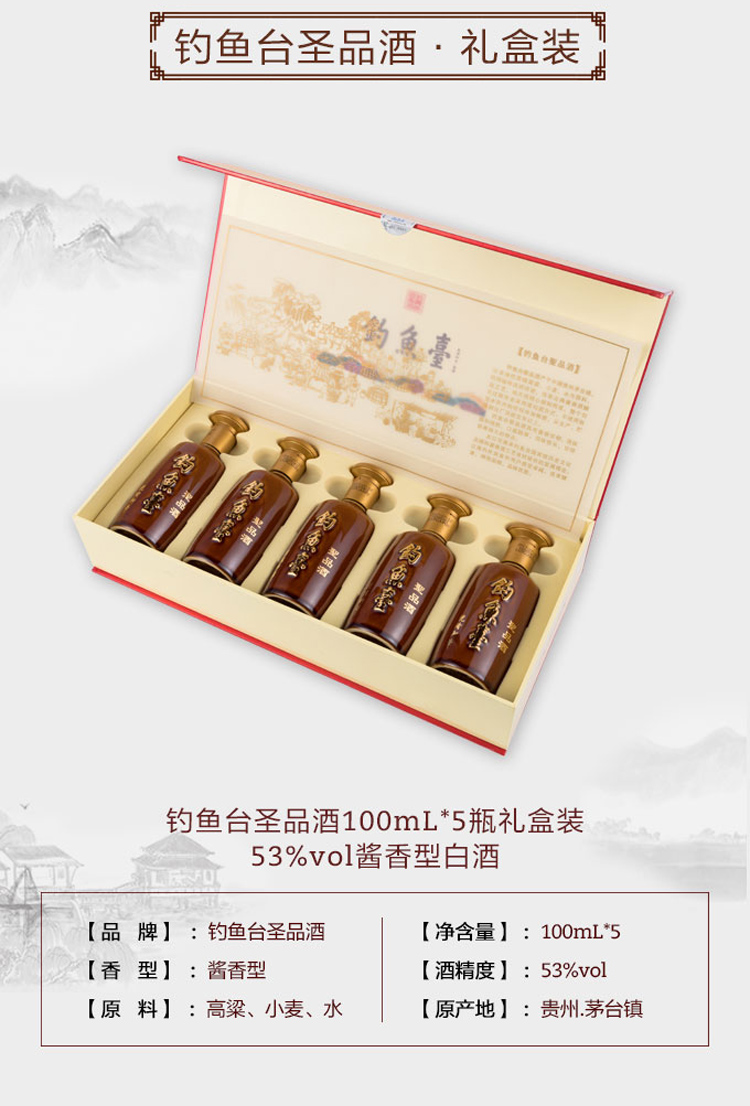 钓鱼台圣品酒【礼盒装】100mlx5 高粱酒 53度酱香型白酒