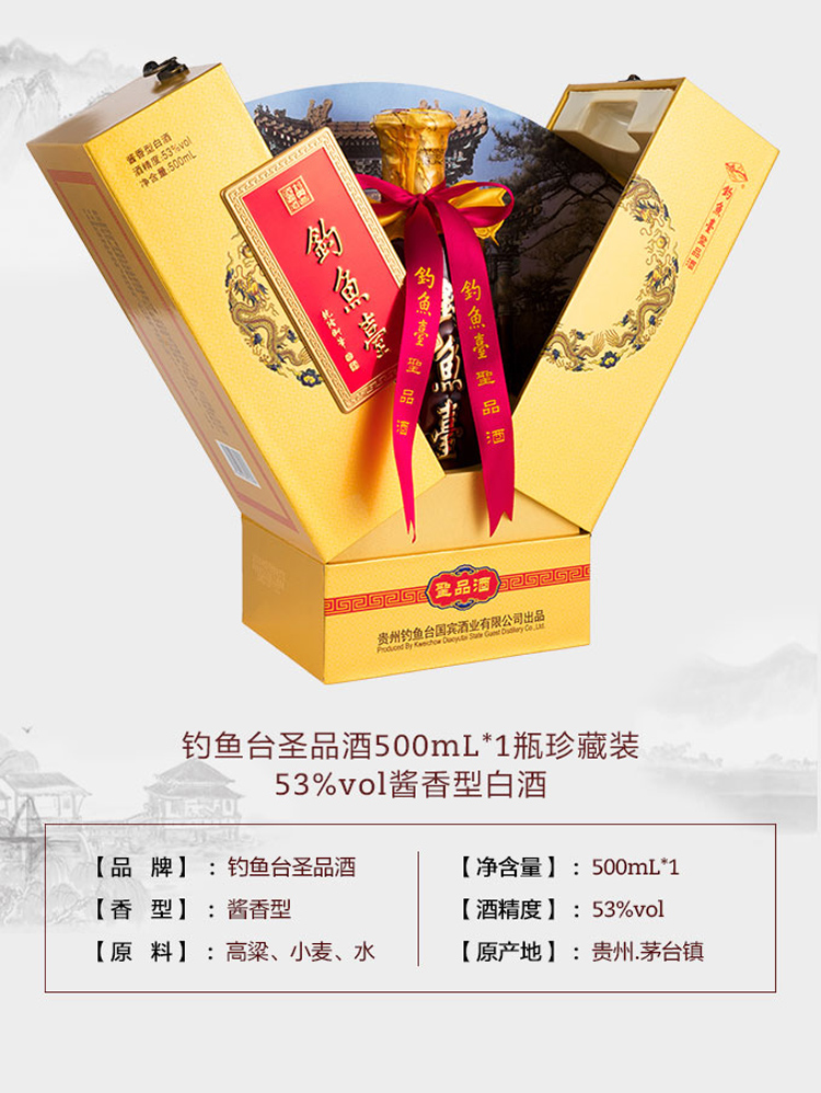 钓鱼台圣品酒【珍藏装】500ml高粱酒 53度酱香型白酒