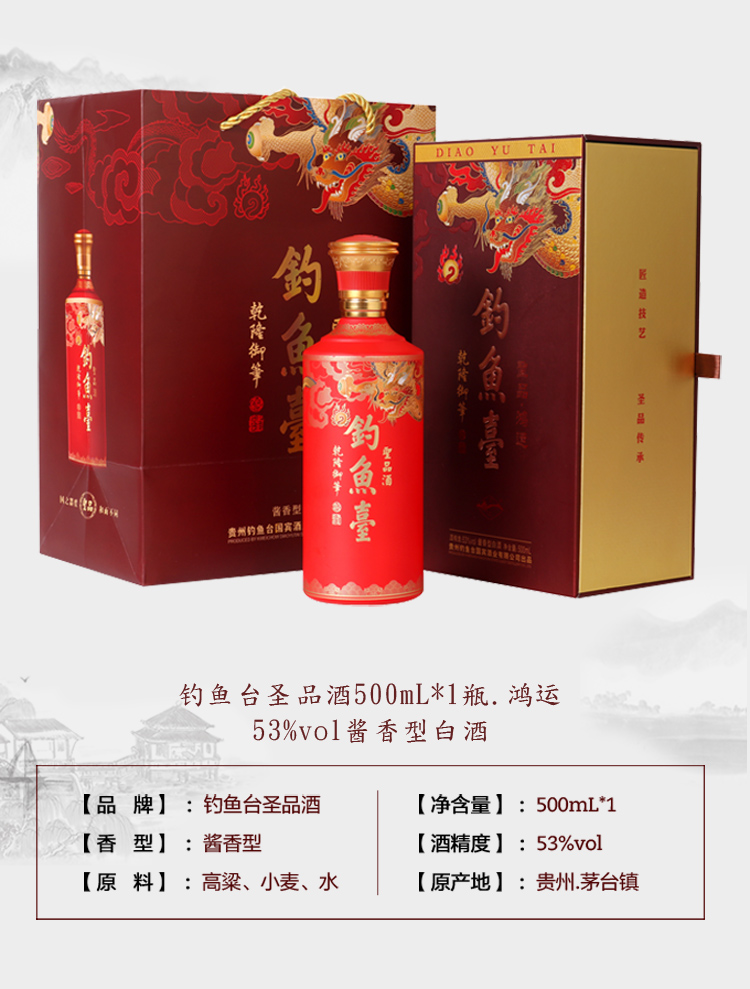 钓鱼台圣品酒【鸿运】500ml高粱酒 53度酱香型白酒