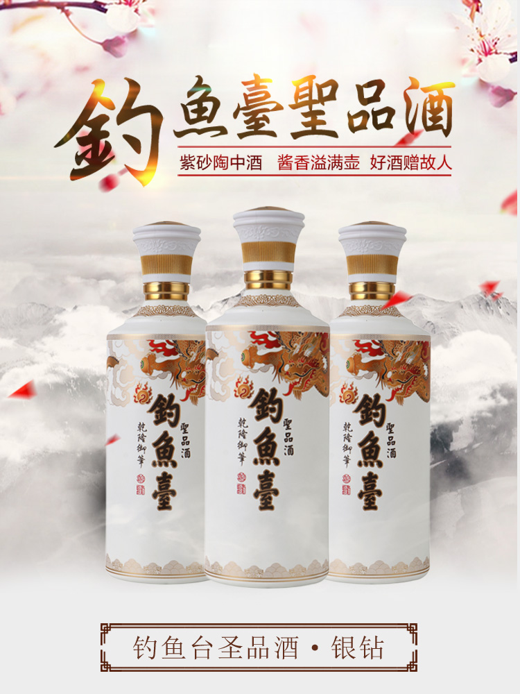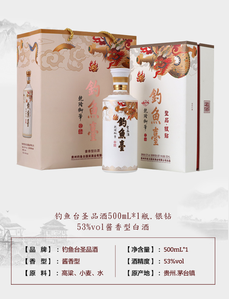 钓鱼台圣品酒【银钻】500ml高粱酒 53度酱香型白酒